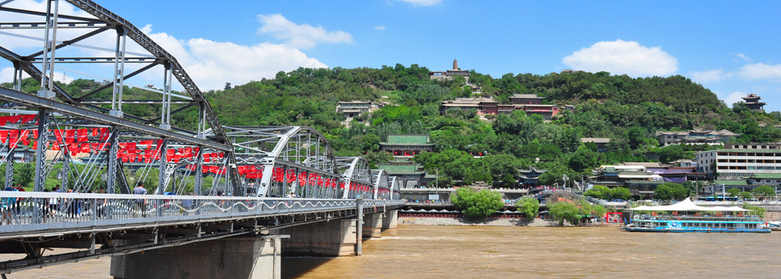 下午返回蘭州市區參觀黃河風情線【黃河鐵橋、黃河母親像、水車園】,蘭州黃河鐵橋,又名中山橋,位於甘肅省蘭州市濱河路中段,白塔山下。由美國橋樑公司設計、德國泰來洋行承建、中國工匠施工的合作模式建造。民國十七年為紀念孫中山先生始稱“中山橋”。