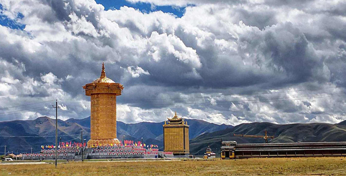 娘瑪寺,位於甘南瑪曲縣阿萬倉鎮,海拔3500米。娘瑪寺的大藏經轉經筒是甘南藏地最具代表性的建築,也是世界上最大的轉經筒!轉經筒高達35.8米,直徑17.6米,內部藏有經書約11萬冊。