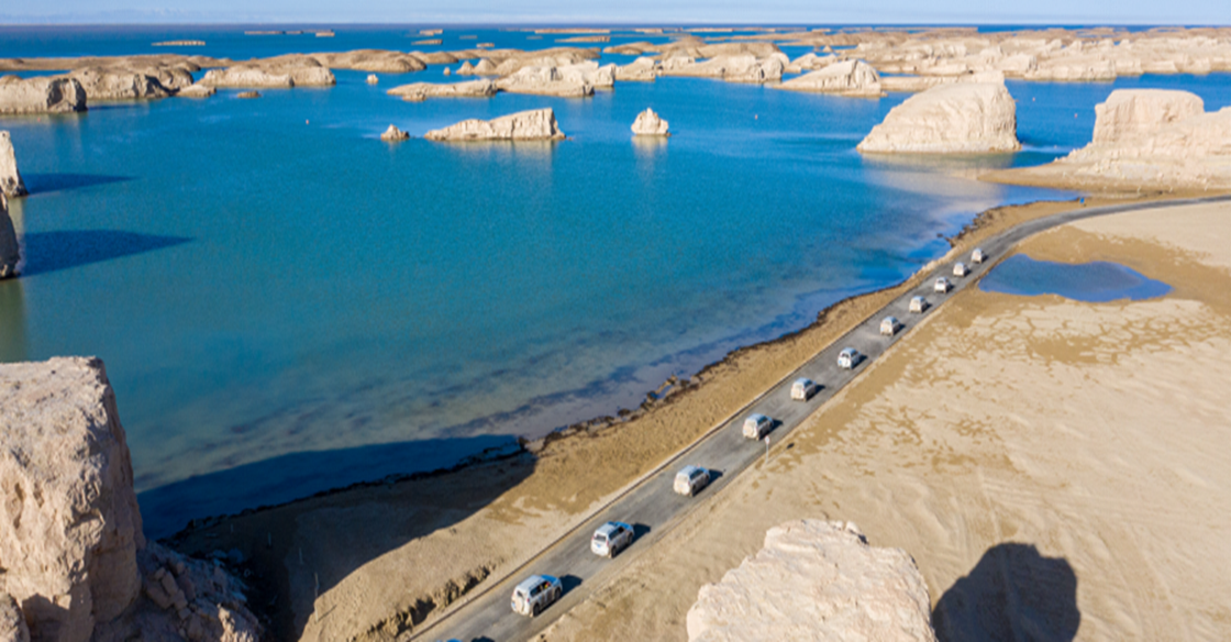 第十天 茫崖-140KM 2.5H黃瓜梁休息站-途觀雅丹地貌-180KM 3H西臺吉乃爾湖-40KM 1H【水上雅丹+區間車、途觀315國道U型公路】-220KM 3H大柴旦