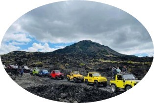 ②火山岩之旅:金塔馬尼是峇裡島著名的火山地區,最著名的火山是 巴督火山。這個火山曾經發生過多次爆發,創造了廣闊的黑色岩漿地帶。在此遊客將搭乘開蓬吉普車。這項活動的最大亮點是吉普車會帶領遊客在崎嶇不平的黑色岩漿路面上行駛,讓遊客能夠近距離感受到火山地形的壯麗與險峻。 (車程約1個半小時)。