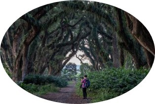②魔界森林:退房後,搭乘兩輛13人座商務車前往爪哇島最東部的 外南夢市,車程約四個半小時。途中將安排停留用餐。抵 達外南夢後,我們將參觀魔界深林。這片森林中的百年古 樹擁有粗壯的樹幹和巨大的樹冠,樹木的大小、形態以及 密集的枝葉,賦予整個森林一種原始且神秘的氛圍,彷彿 進入了一個充滿魔法的夢幻世界。