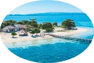 ① Kanawa島:①午前下船時,我們將來到「海膽島」。 這是一個私人島嶼。這裡的特色是具有潔白如雪的沙灘和透明的海水。這裡的水域寧靜,適合游泳和浮潛。遊客可以在淺水區徜徉與餵食五光十色的熱帶魚群,享受與大自然親密接觸的時光。