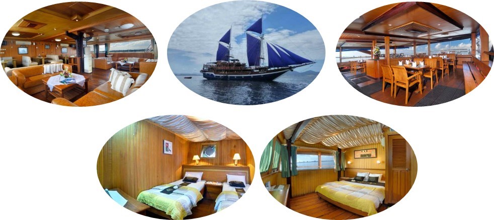 早機從峇裡島飛往拉布安,航程約1小時10分。到達拉布安市後,貴賓們轉坐多部6座小車(車程約10分鐘). 到達碼頭後,貴賓們登上長:35米,寬:11米,的5星仿古遊船(海盜船)