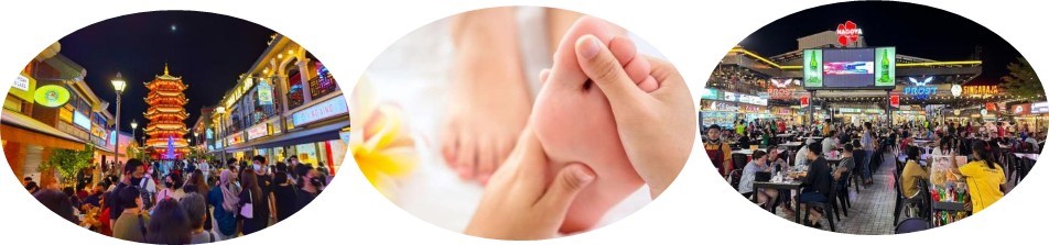 華語導覽機場迎接 - 入住機場附近飯店後,休息稍作。下午搭乘旅遊巴士前往雅加達新城體驗1個半小時的健康足療。隨後享用中式活海鮮美食(龍蝦,石斑魚,大螃蟹,大蝦,魷魚,蚌,等等)。晚餐後,前往海邊啤酒街,導遊將贈送一杯印尼啤酒嗨一下。