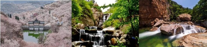 【嶗山北九水風景區】,有天然藝術畫廊之稱,九水十八潭,水水都相通,潭潭都相連定會把你帶入一個美麗的自然仙境。【嶗山】北九水為嶗山山泉匯流而成,源自嶗山主峰巨峰頂的“天乙泉”。泉水從海拔1100 多米的高峰順勢而下,中途又彙集了眾多的溪流,沿著長長的深山峽谷,曲曲折折,驟緩時急,兩側群峰綠樹成蔭,一折山石一曲水,每一水都有獨特的景致,因而被譽為“九水天然畫廊”。行走在山水相繞的瑰麗畫廊中,耳中泉水淙淙,鳥鳴啾啾,還有惟妙惟肖的山石,碧綠清澈的潭水,春夏季節滿山各種樹木野花競相開放,欣賞此景令人心情無比的愜意。4 月是櫻桃花開季節,滿山櫻桃樹被櫻花包裹覆蓋甚是壯觀!嶗山北九水以種植櫻桃而聞名天下、4 月滿山遍野櫻桃花盛開、雪白一片、如鵝毛覆蓋、冬季雪景一般。秋季滿山紅楓似火如霞、如畫染、似夢中仙境。
