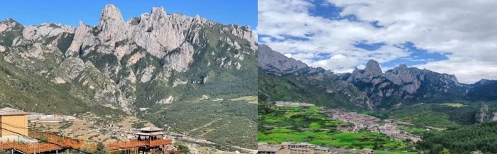 紮尕那(遊覽約2.5小時)藏語意為“石匣子”,地形呈天然石城結構,主峰光蓋山(古稱“石鏡山”)海拔3970米。其東側為聳峙岩壁,南側兩座石峰形成石門,東南部分佈峭壁與溪流,保留傳統藏族村寨及踏板房、青稞架等設施。 該區域解放前屬卓尼縣楊土司轄地,2021年啟動房屋風貌改造工程,採用泥巴牆、石板路等本土元素。2023年獲評聯合國“最佳旅遊鄉村”稱號。