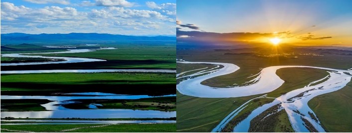 【黃河九曲第一灣】,黃河九曲第一灣發源於巴顏喀拉山(海拔4500米)之黃河,流經四川省境內,在若爾蓋縣唐克鄉索克藏寺院旁形成的著名景點。黃河在此橫切徑為300米,白河橫切徑為400米。黃河於此段流程中,為四川與甘肅之界河,河西為甘肅,河東為四川。黃河自甘肅一側來,白河自黃河第一灣灣頂匯入,型如“S”型,黃河之水猶如仙女的飄帶自天邊緩緩飄來,在四川邊上輕輕撫了一下又轉身飄回青海,故此地稱九曲黃河第一灣。